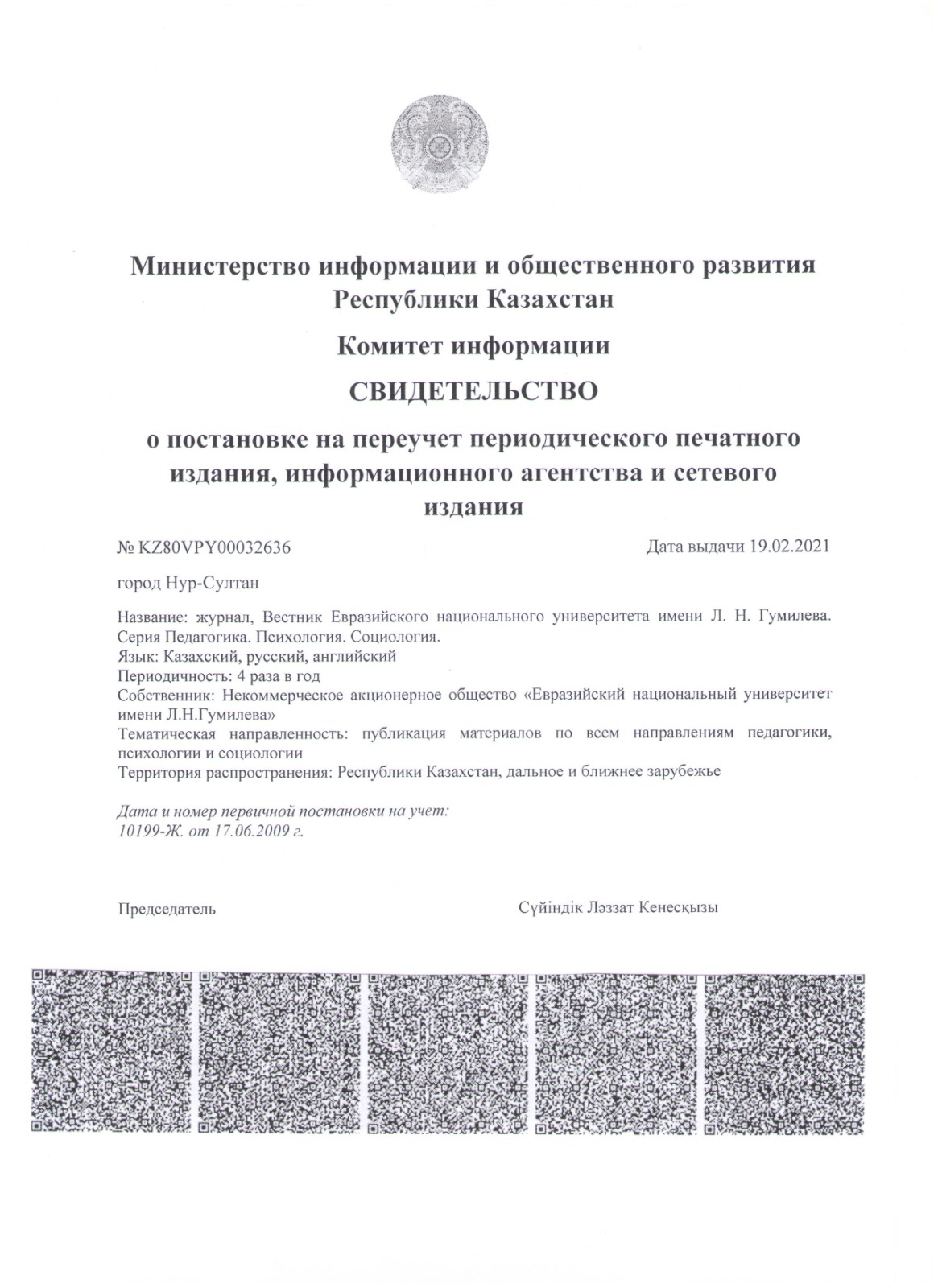 Журнал Қазақстан Республикасы Ғылым және жоғарғы білім министрлігінің Ғылым және жоғары білім саласындағы сапаны қамтамасыз ету комитеті ұсынатын басылымдар тізбесіне енгізілген (педагогика, психология бағыттар бойынша)